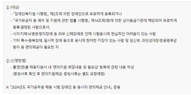 - ‘시험 중 화장실 사용 허용’ 편의제공 대상자(임산부, 질환자 등)는 사전신청자에 한하여 상시 사용 가능