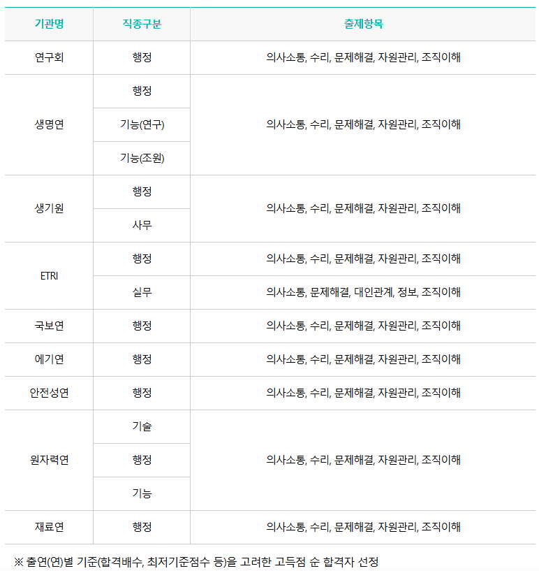 ※ 심사내용, 심사대상, 심사기준, 시험시간, 임용예정일 등 상세정보는 출연(연) 채용 페이지 내 개별 공고 참조