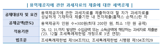 | 용역제공자에 관한 과세자료의 제출에 대한 세액공제 개요
