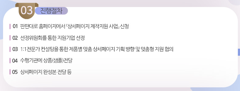 - 소상공인을 대상으로 온라인쇼핑몰에서 상품 판매를 위해 제품의 특징과 장점을 소개할 수 있는 상세페이지 제작을 지원해 드리는 사업입니다.