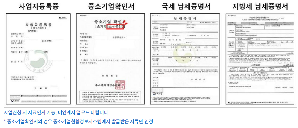 * 중소기업확인서의 경우 중소기업현황정보시스템에서 발급받은 서류만 인정