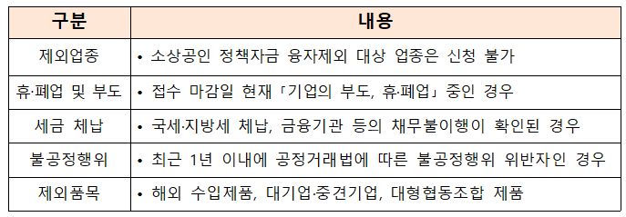 - 신청제외대상: 제외업종 등 아래 그림 참고하세요