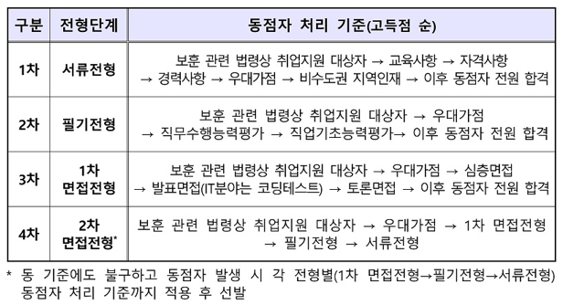 ※ 최종 선발예정인원이 3명 이하인 고졸(일반행정) 분야는 취업지원 대상자 가점 미적용(단, 동점자 처리 시 우대)