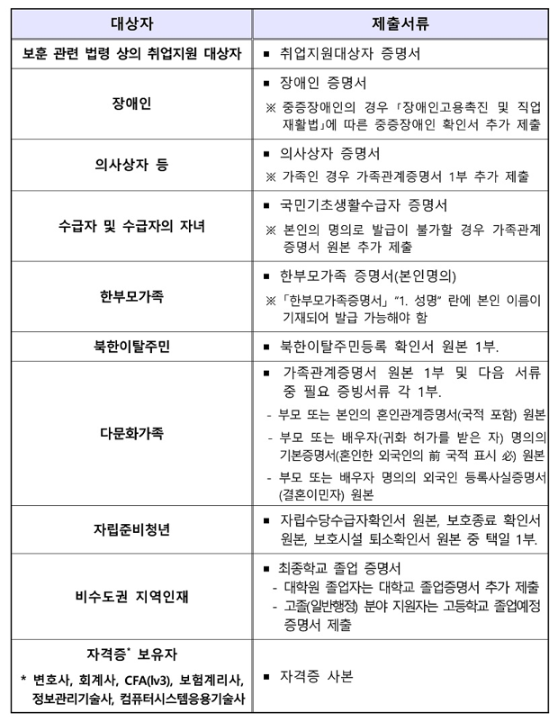※ 채용 공고일 이후 발급된 증명서에 한해 우대사항 적용 예정