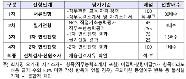 - 채용전형 및 일정 등은 공사의 사정에 따라 변경될 수 있습니다. (변경 시에는 공사 홈페이지를 통해 공고 예정)