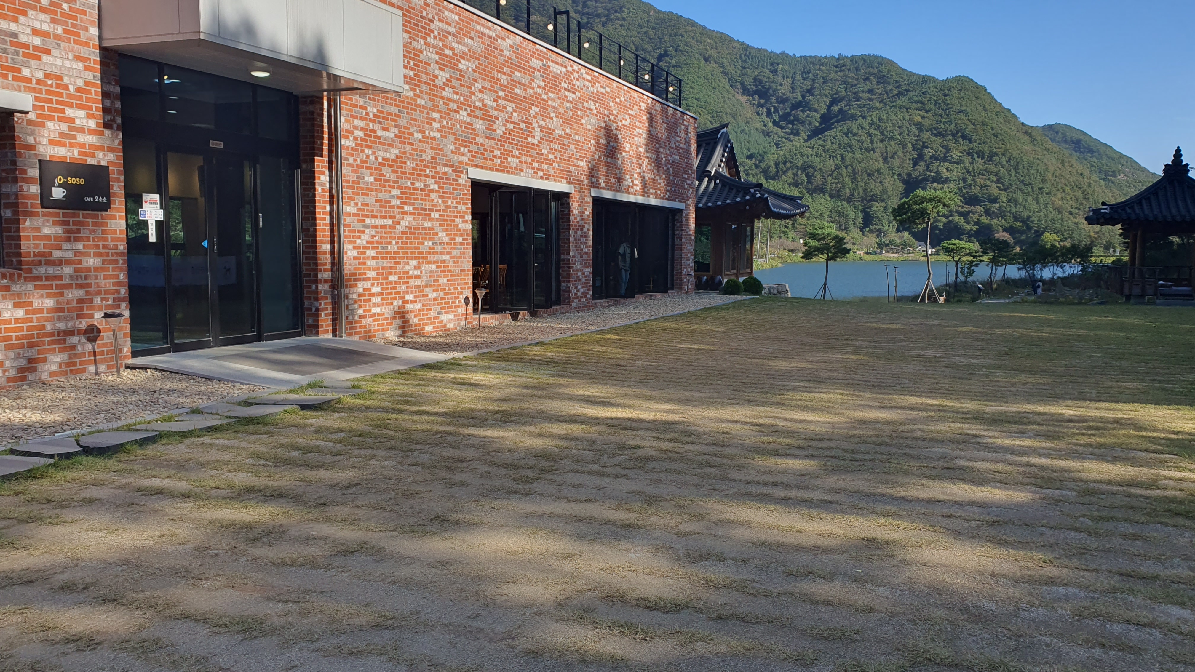 통창 너머로 아름다운 저수지와 잘 어우러진 야외 잔디마당이 눈을 시원하게 합니다.