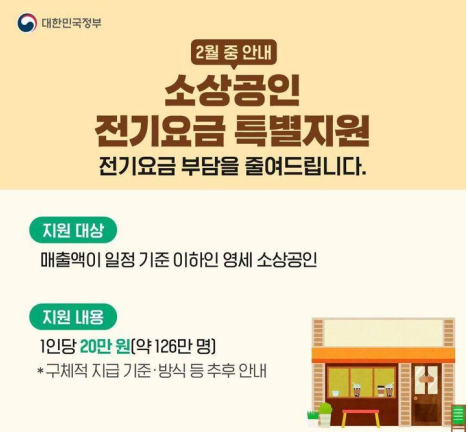 ◆ 소상공인 전기요금 특별지원(2월 중 안내) 전기요금 부담을 줄여드립니다.