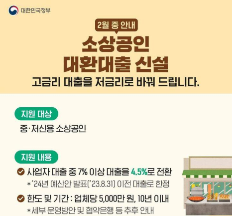 ◆ 소상공인 대환대출 신설(2월 중 안내) 고금리 대출을 저금리로 바꿔 드립니다.