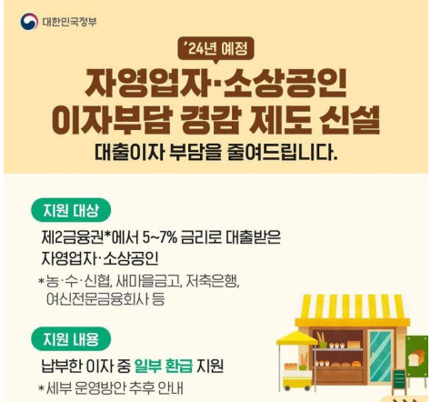 ◆ 자영업자·소상공인 이자부담 경감 제도 신설(24년 예정) 대출이자 부담을 줄여드립니다.