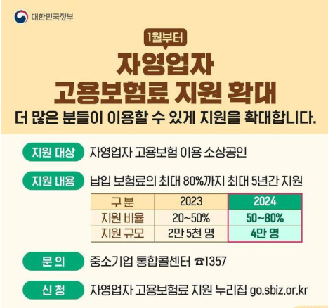 ◆ 자영업자 고용보험료 지원 확대(1월부터) 더 많은 분들이 이용할 수 있게 지원을 확대합니다.