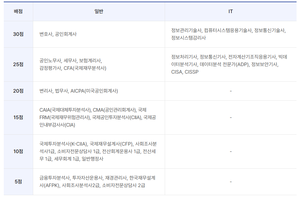- ※ 자격증 복수 기입시 배점이 가장 높은 자격증 한 개만 인정