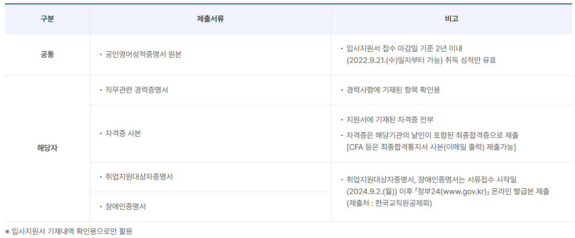 - 공인영어성적증명서, 자격증, 우대사항 관련 서류 등
