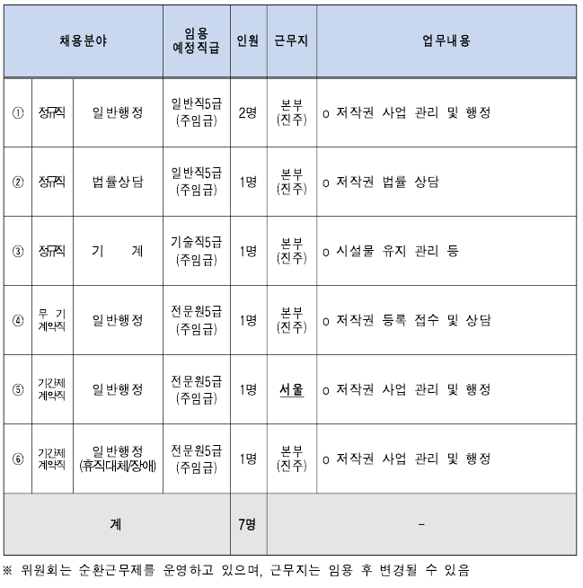 - 본 채용계획은 사정에 의하여 변경될 수 있으며, 변경된 사항은 위원회 홈페이지 (http://www.copyright.or.kr)를 통해 공지합니다.