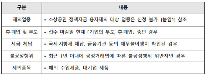 나. 지원제외 대상