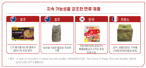 - 기후 위기, 영양학적, 새로운 맛에 고려는 다양화 소재의 혁신적인 면류 출시 확대 전망