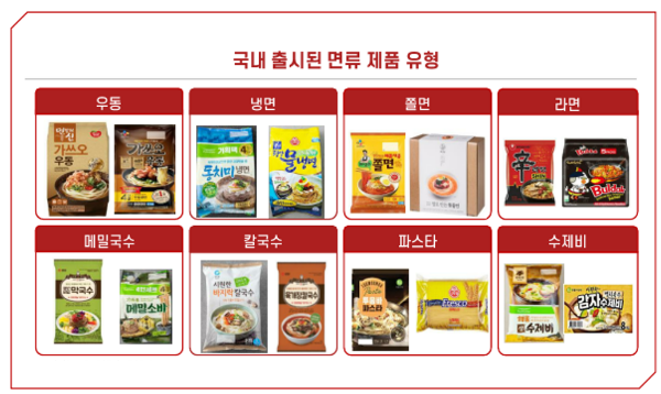 - 간편하게 요리할 수 있고 장기간 보관이 용이하여 전 세계적으로 면류 수요가 증가하고 있음