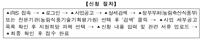 - 농림축산식품과학기술 분야의 연구인력을 1명 이상 상시 확보 하고 있는 기관(기업) 및 단체 또는 연구소 *