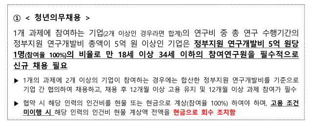 - 청년인력 의무채용 준수
