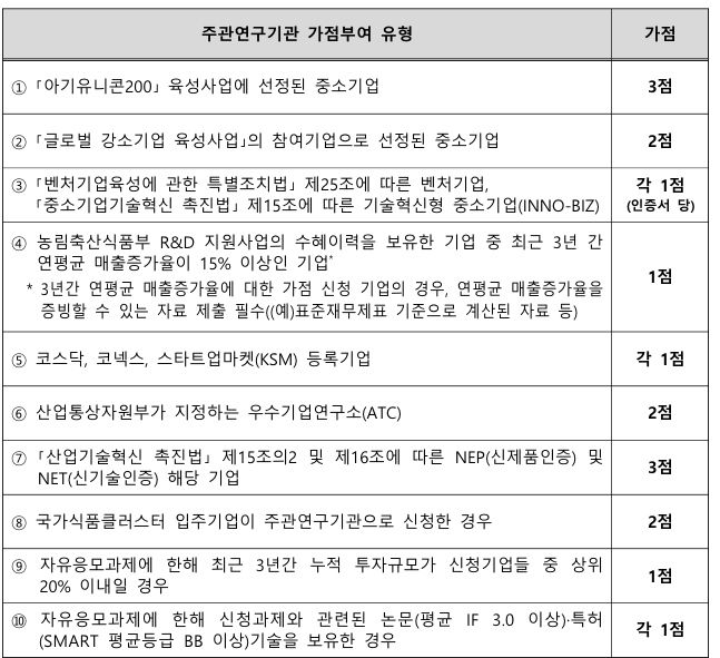 - 고부가가치식품기술개발사업 별도 가점