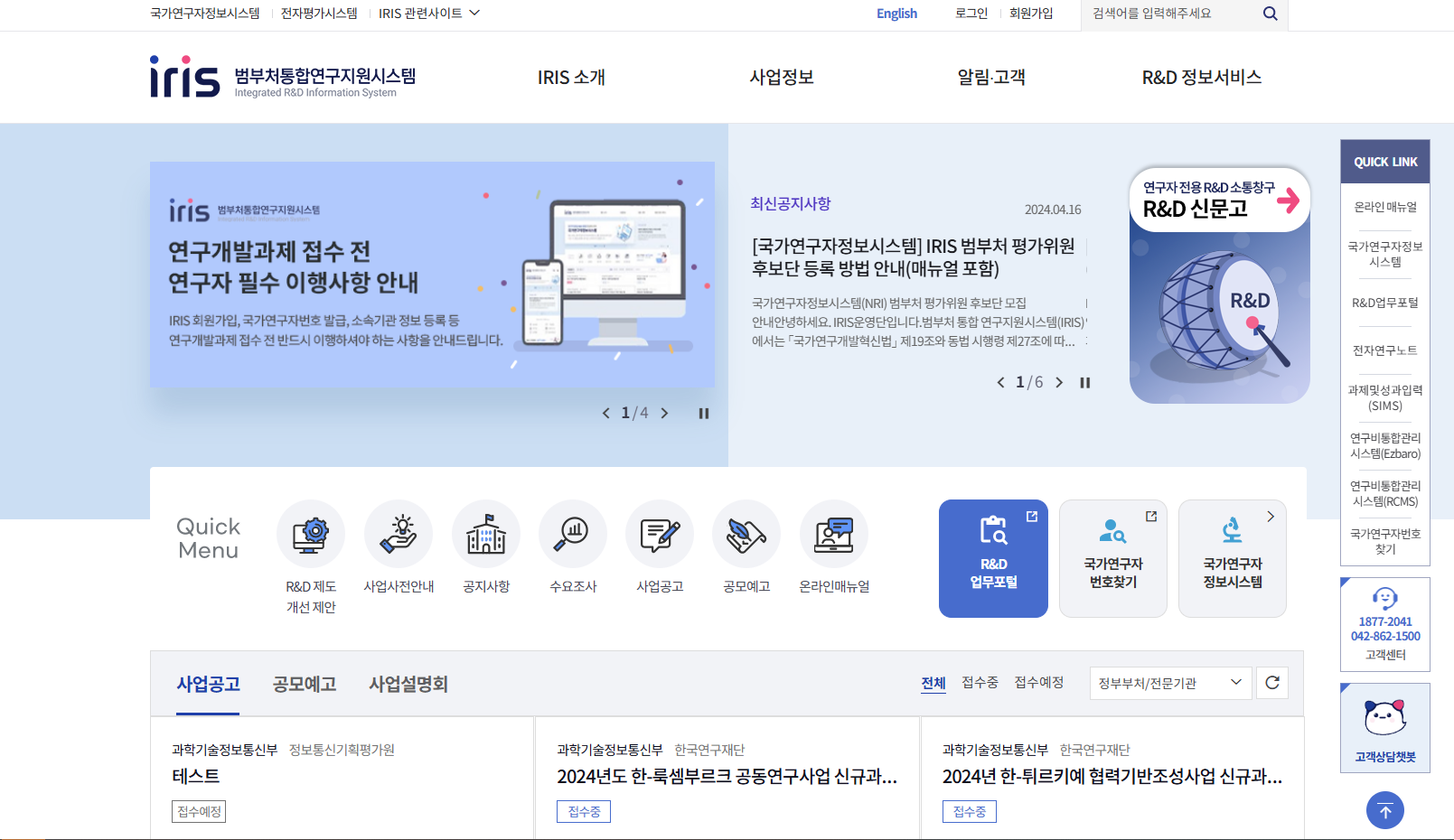 - 접수 기간 내 IRIS에서 회원가입과 함께 연구자 전환, 연구기관 정보 등록 및 총괄담당자 지정 필수(참고 1 참조)