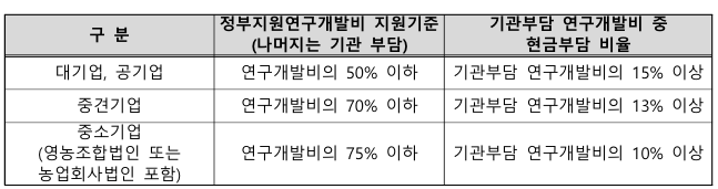 - 연구개발비의 지원‧부담 기준 준수