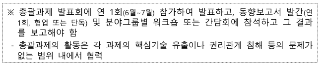 - 연구분야별 총괄과제 활동 협조