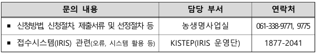 - 농림축산식품과학기술 분야의 연구인력을 1명 이상 상시 확보하고 있어야 함