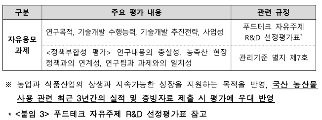 - 고부가가치식품기술개발사업 별도 가점