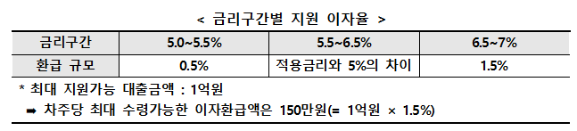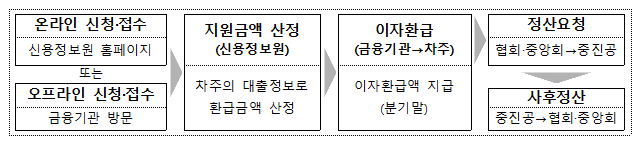 - 금융기관이 이자환급을 신청한 차주에게 1년간 납입한 이자의 일부를 환급하고, 중진공은 환급액을 재정으로 보전
