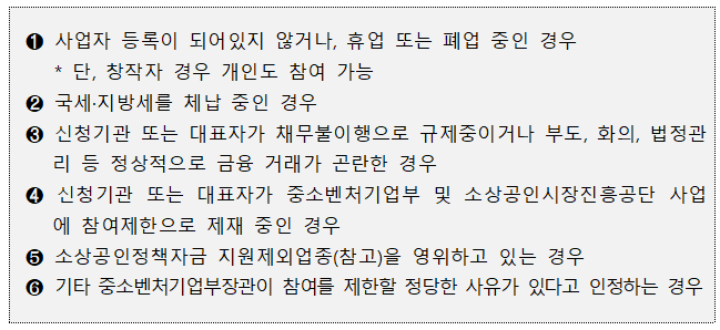 - 공고일 기준 아래 요건 해당 시 신청 불가