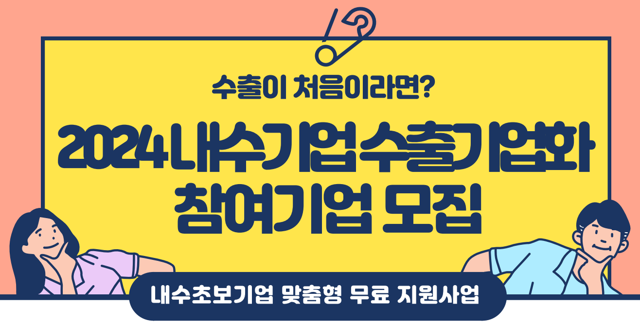 - 자세한 내용은 아래 첨부된 2024년 내수기업 수출기업화 사업 공고문을 다운로드 하셔서 참고하시기 바랍니다.