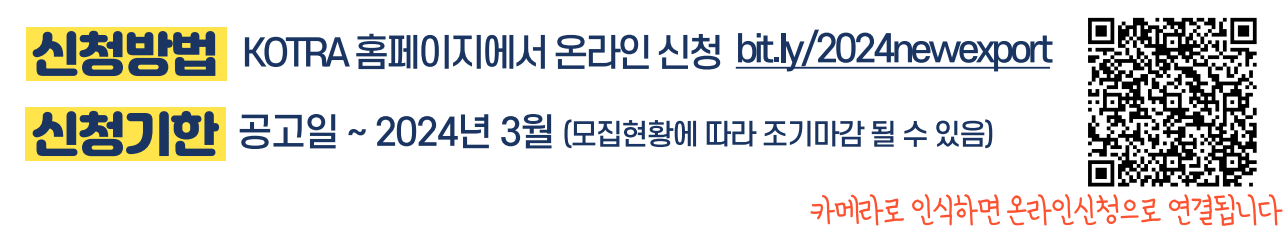 - □ KOTRA (중소·혁신기업팀) 전화번호 : 02-3460-3272, 7546, 7541 / 이메일 : 2024export@kotra.or.kr