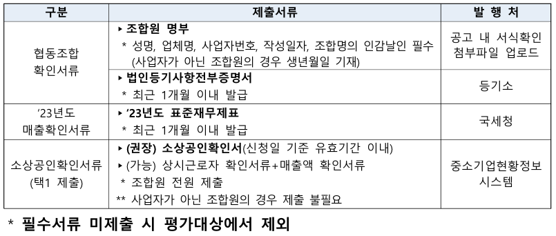 ① (소공인·협동조합) 공통서류 1 ~ 4까지 제출필수