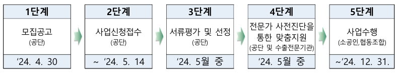 중소벤처기업부에서 공고된 소공인 및 소상공인협동조합의 해외 판로개척을 돕기 위한 「2024년 역량단계별 수출지원사업」에 대한 내용을 정리해 드리겠습니다.