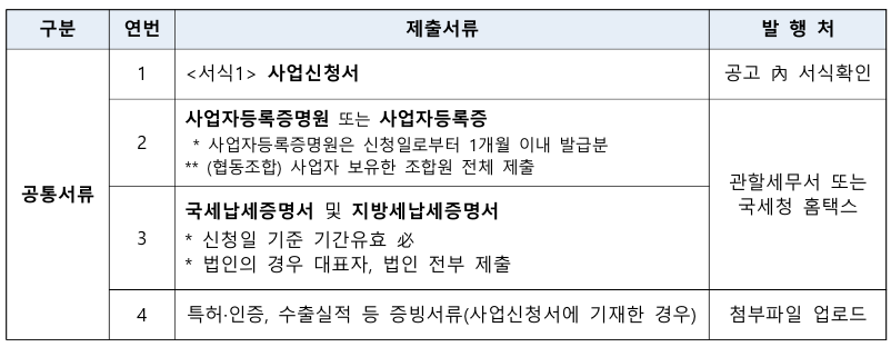① (소공인·협동조합) 공통서류 1 ~ 4까지 제출필수