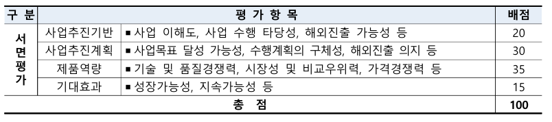 - (서면평가) 평가항목별 기준에 따라 서면평가 실시
