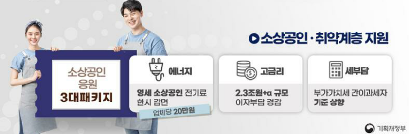- 중소벤처기업부(오영주 장관)는 “국가경제의 근간인 소상공인들이 어려운 경기상황을 극복하고 대한민국 경제주역으로서 당당히 자리 잡을 수 있도록, 경영부담 완화부터 기업가형 소상공인으로의 도약까지 중소벤처기업부가 733만 소상공인에 대한 소홀함 없는 지원사업을 이어나가겠다”라고 밝혔다.