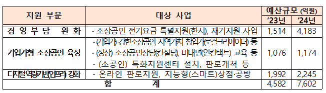 | 2024년 소상공인 지원사업의 세부 내용