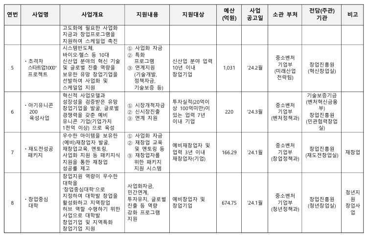 - (‘23) 창업지원사업 8개 유형별로 구분