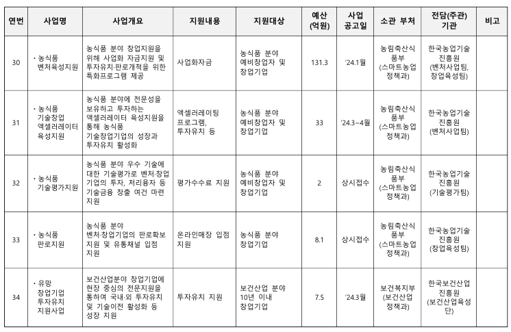 「중소기업창업 지원법」 제14조(창업정책정보의 수집 및 제공)에 따라 2024년 창업지원사업을 공고하오니, 창업기업 및 예비창업자의 적극적인 참여를 바랍니다.