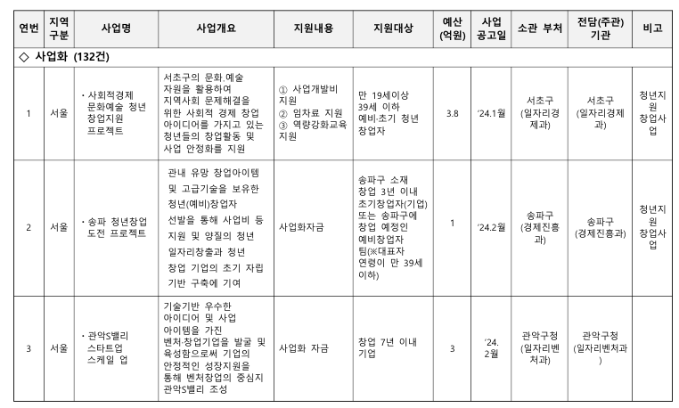 기타 상세한 내용은 아래에 첨부된 2024년 중앙부처 및 지자체 창업지원사업 통합 공고문을 참고하시기 바랍니다.