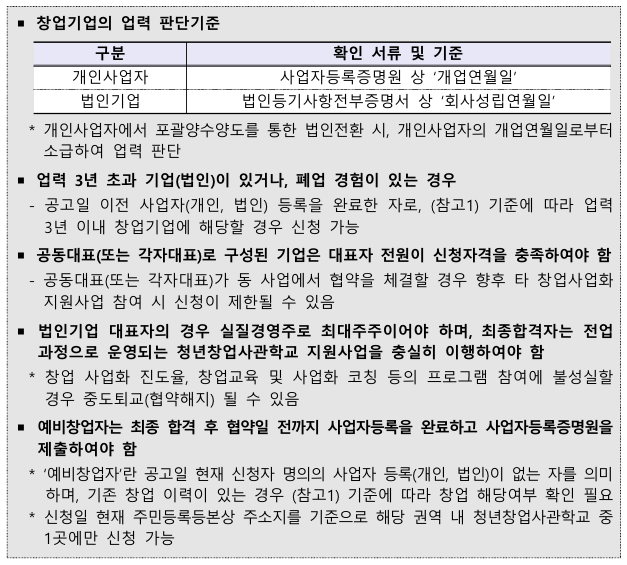 * 신청자격 기준일(공고일 기준 창업 3년 이내 기업) : 2021년 1월 15일 이후 창업기업(1.15일 포함) * 대표자 생년월일 관련 기준일 : 1984년 1월 16일 이후 출생자(1.16일 출생자 포함)