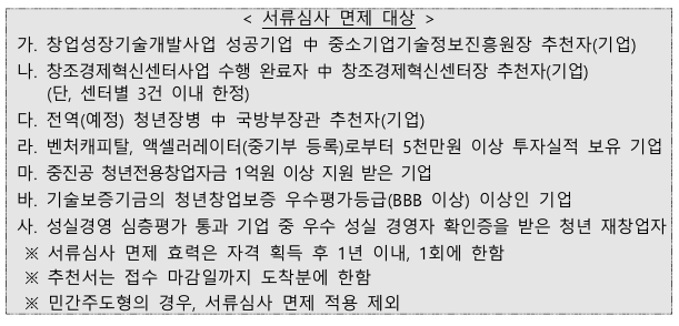 - 신청제외대상 및 지원제외 대상 업종에 해당하지 않는 자(기업)