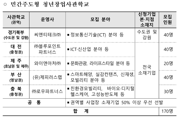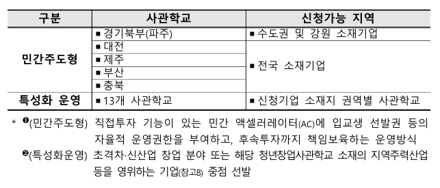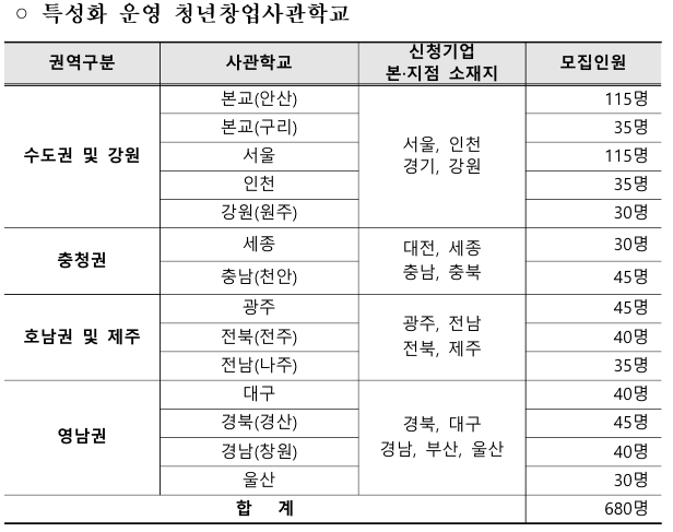 | 청년창업사관학교 모집 개요
