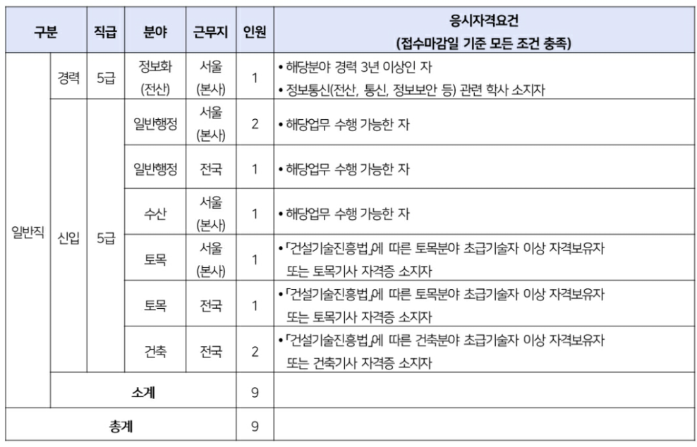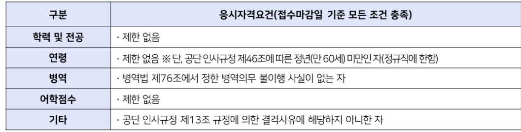 - 공통 자격 요건 채용 분야별 자격 요건이 충족되지 않는 경우 입사 후에도 합격이 취소될 수 있음.