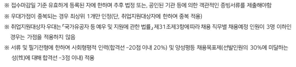 - 응시 인원이 채용 인원에 미달할 경우 연장 공고를 실시할 수 있으며, 채용 인원과 같거나 미달하더라도 적격자가 없는 경우 선발하지 않을 수 있습니다.