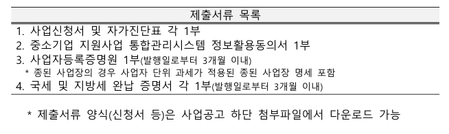- (제출 서류) 사업 신청 시 아래 서류를 온라인으로 등록